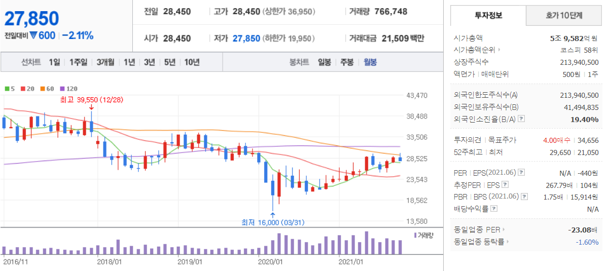 아시아나항공 ( 020560 : 코스피 )