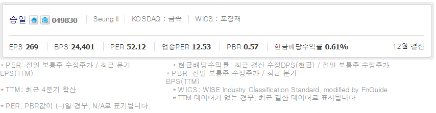 승일 ( 049830 : 코스닥 ) / 네이버금융 참고