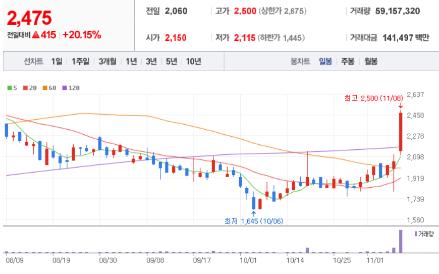 웹스 ( 196700 : 코스닥 ) - 11월 8일 장 마감 기준