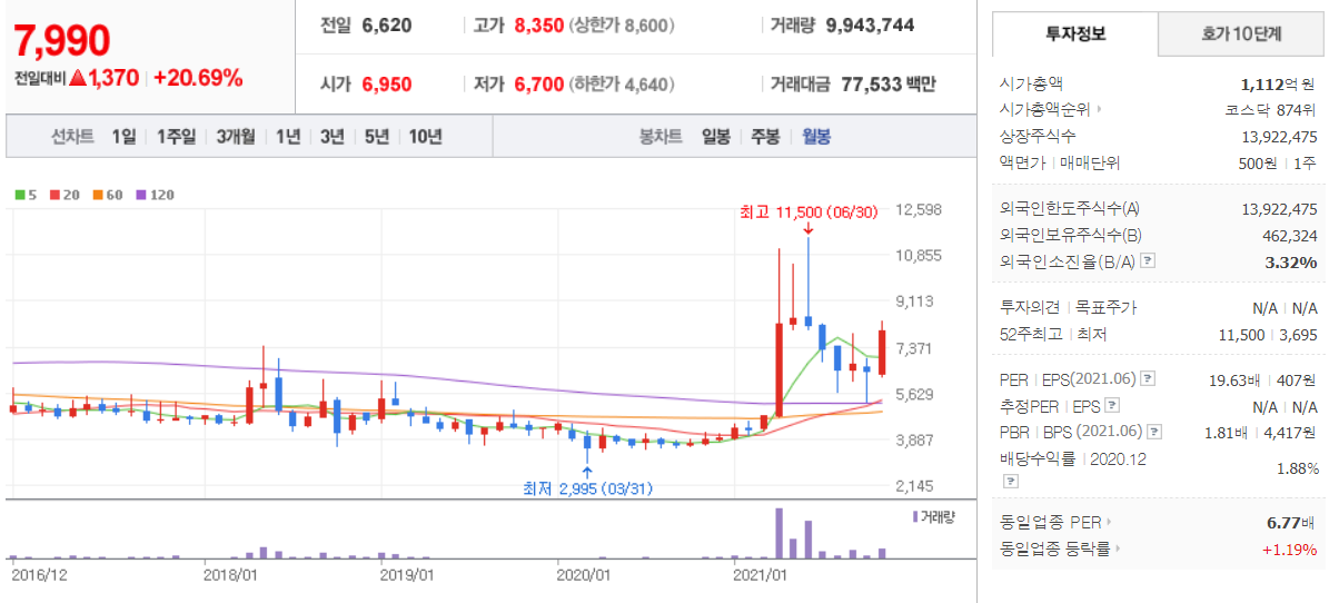 원풍 (  008370 : 코스닥 ) / 네이버금융 참고