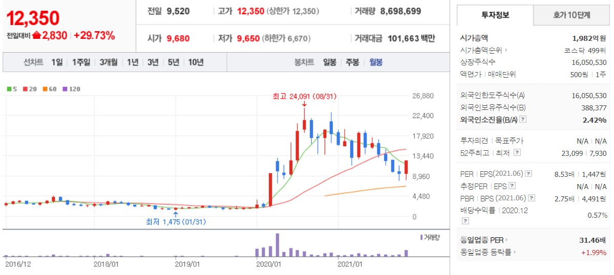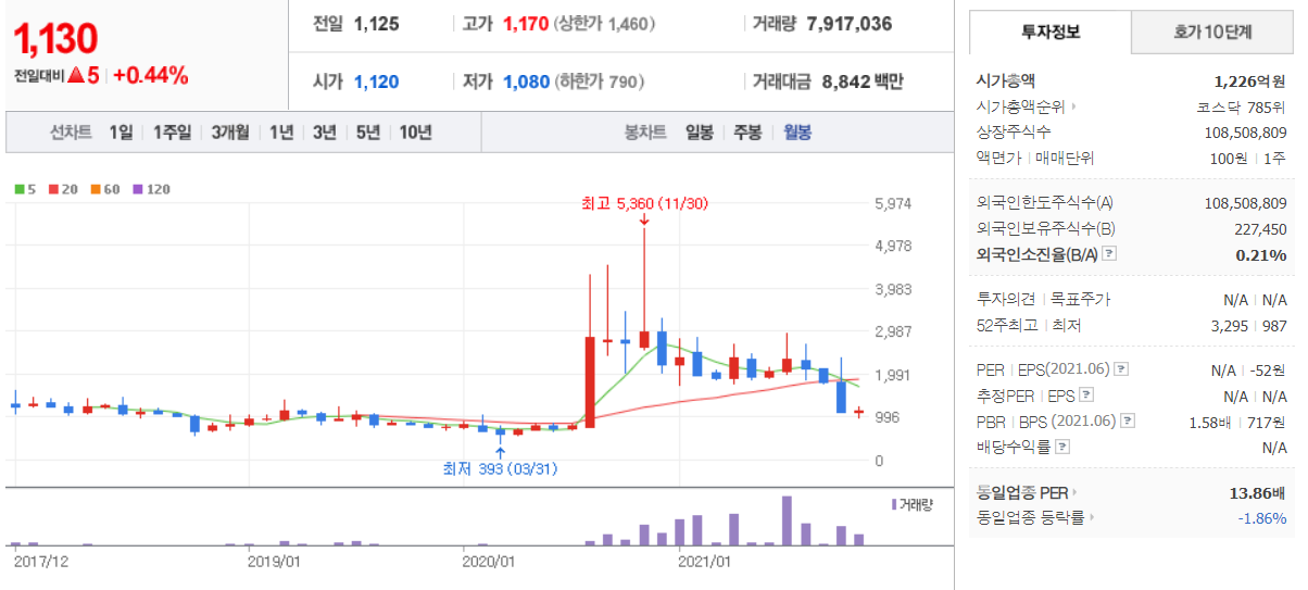 우정바이오 (  215380 : 코스닥 ) - 월봉 / 네이버금융 참고