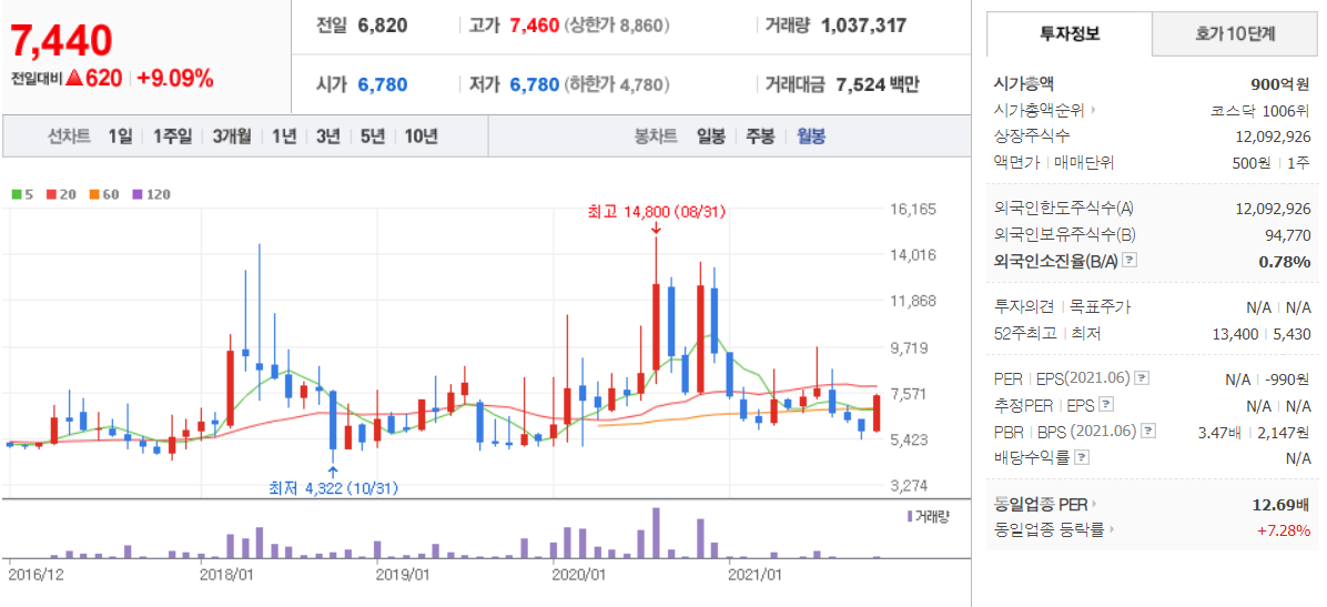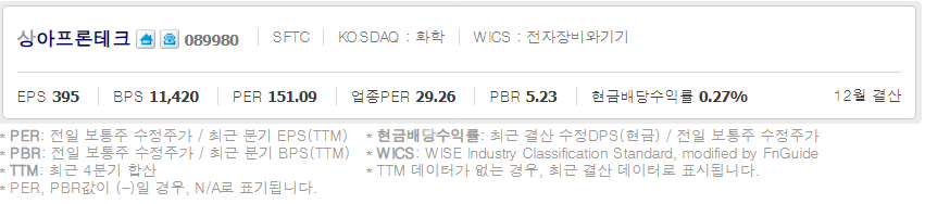 상아프론테크 (  089980 : 코스닥 ) / 네이버금융 참고