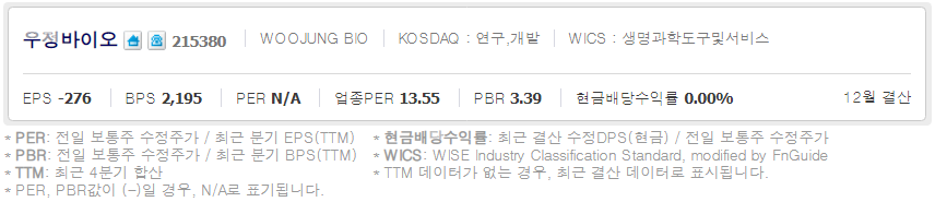 우정바이오 (  215380 : 코스닥 ) / 네이버금융 참고