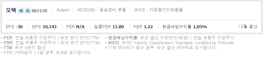 오텍 (  067170 : 코스닥 ) / 네이버금융 참고