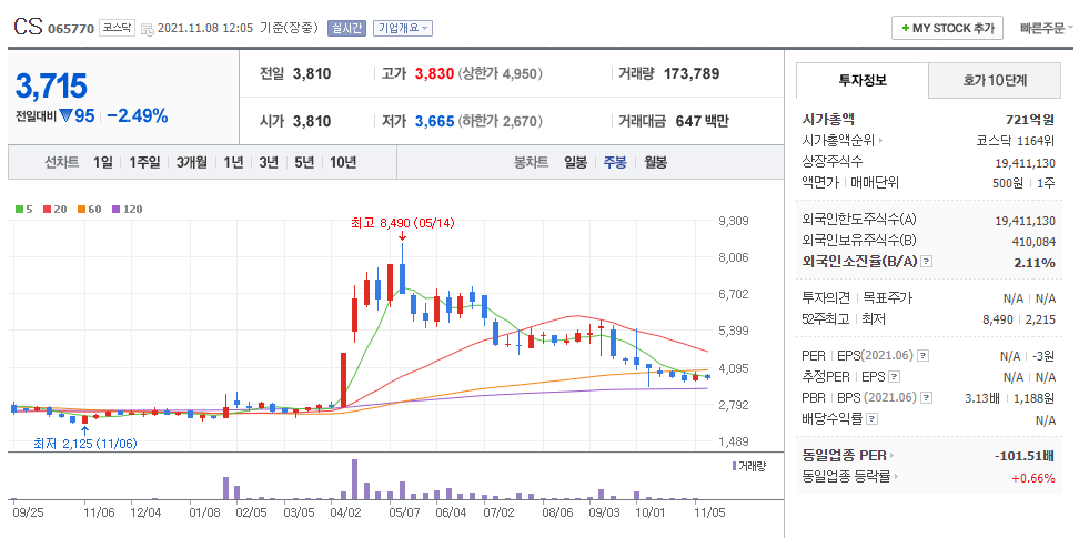 - 주봉 / 네이버금융 참고