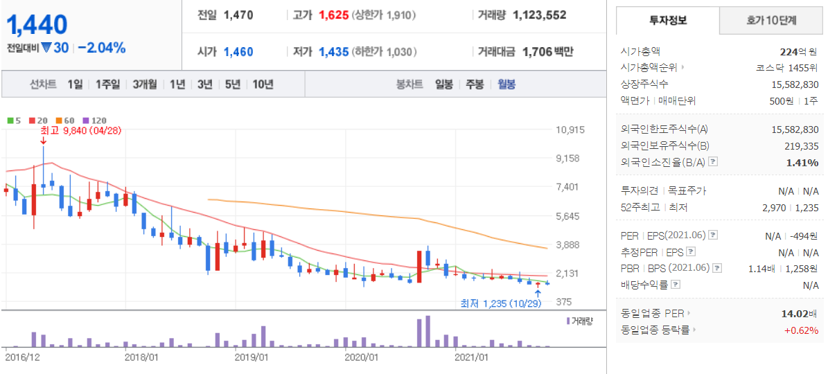 칩스앤미디어 (  094360 : 코스닥 ) / 네이버금융 참고