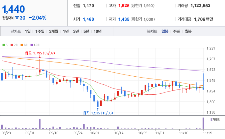 THE MIDONG ( 161570 : 코스닥 ) - 11월 19일 장 마감 기준