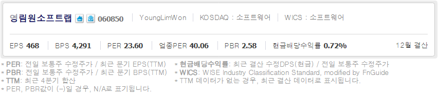 영림원소프트랩 ( 060850 : 코스닥 ) - 11월 26일 장 마감 기준