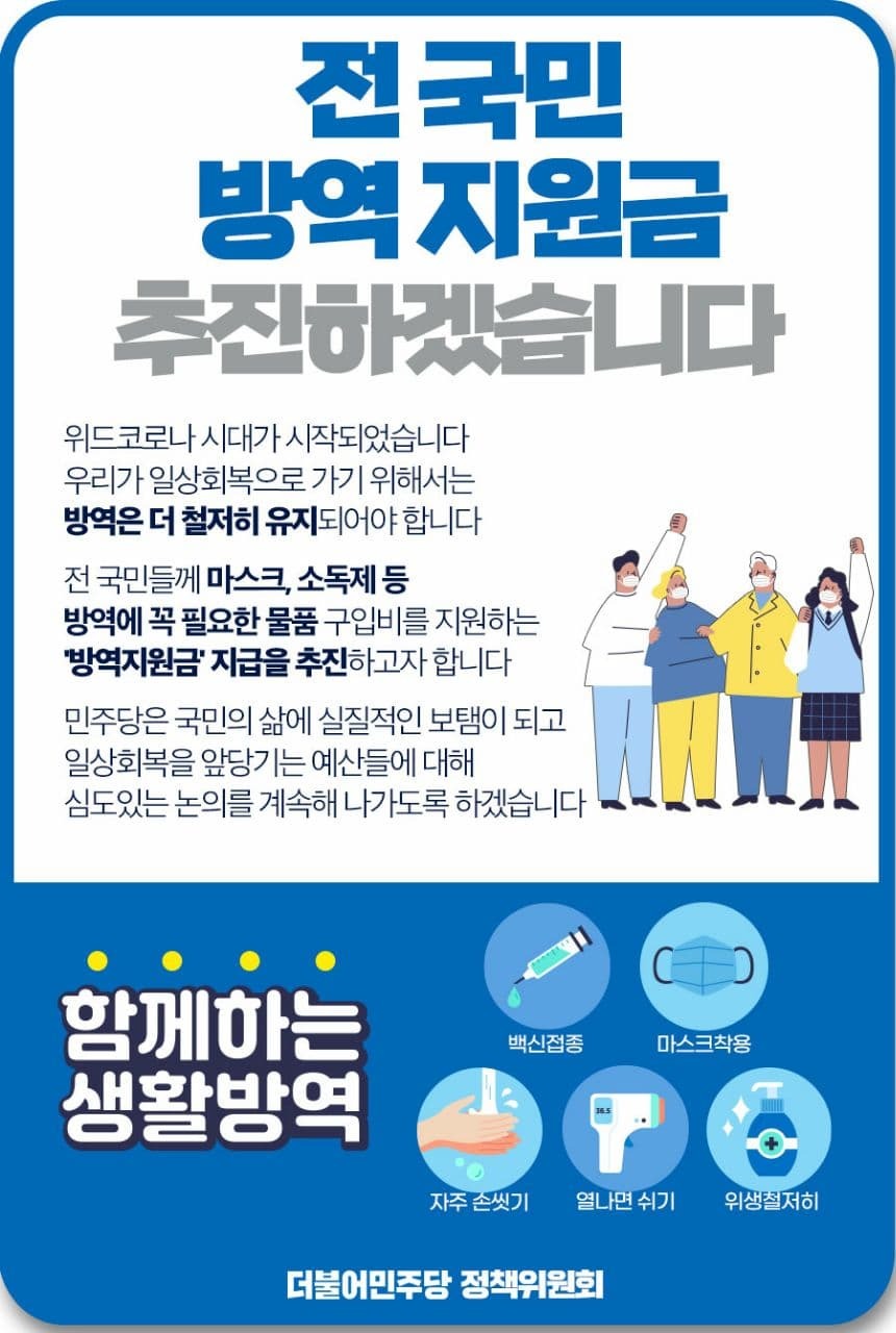 박완주 정책위의장도 일상 회복의 길로 가기 위해 꼭 필요한 방역물품 구비 등을 위해 지원금 지급을 추진하는 것이라