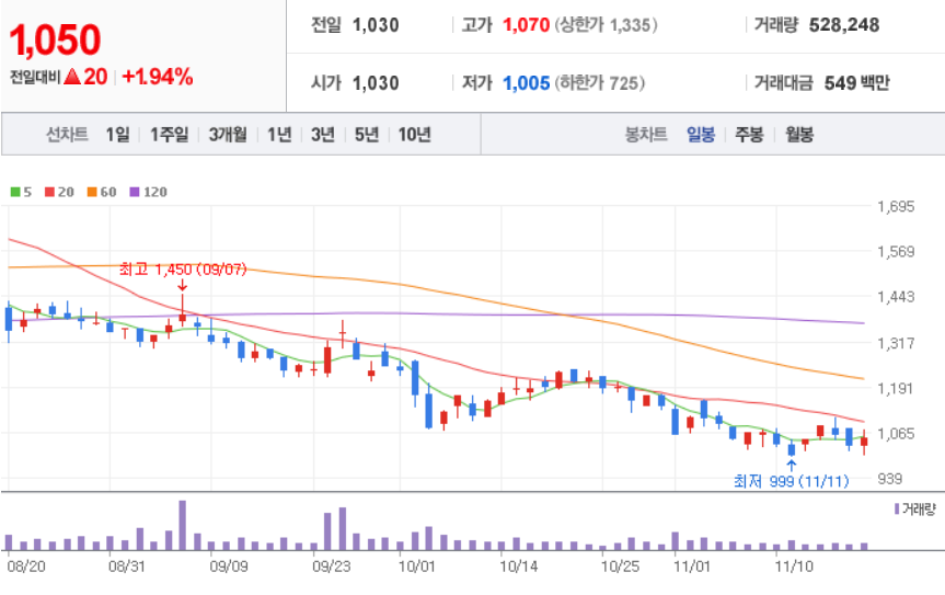신원 ( 009270 : 코스피 ) - 11월 18일 장 마감 기준