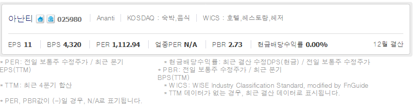 아난티 ( 025980 : 코스닥 ) - 11월 18일 장 마감 기준
