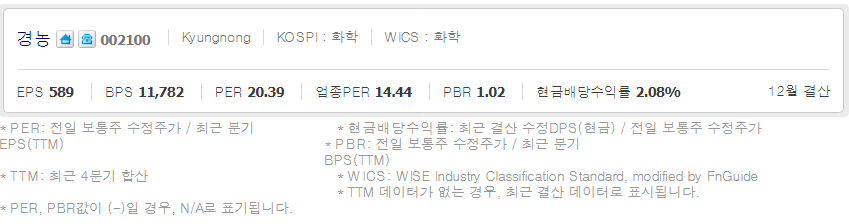 경농 ( 002100 : 코스피 ) - 11월 18일 장 마감 기준
