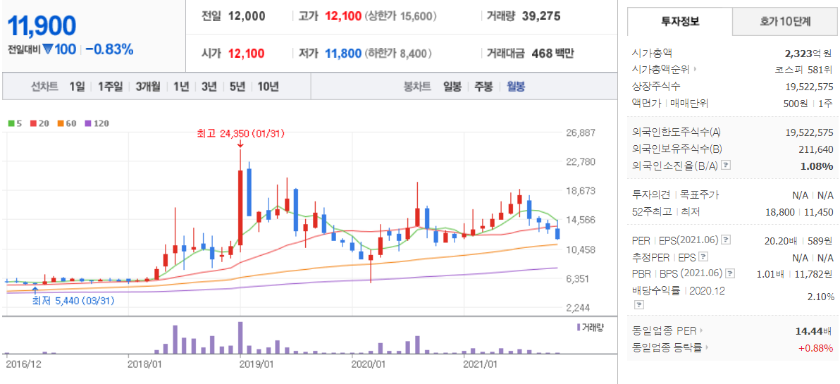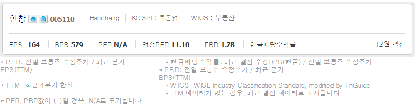 한창 ( 005110 : 코스피 ) - 11월 18일 장 마감 기준