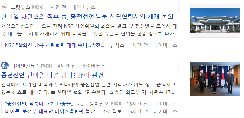 오늘은 종전선언 관련주에 대하여 정리를 해 보도록 하겠습니다.