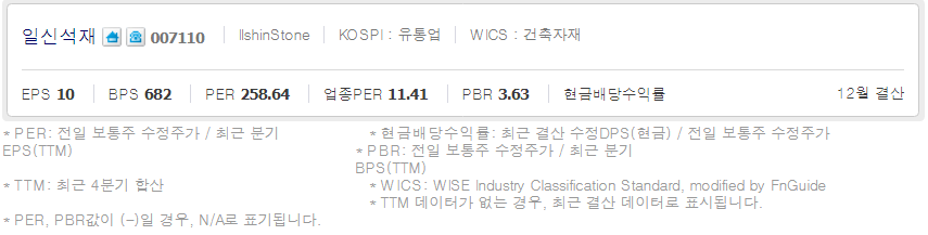 일신석재 ( 007110 : 코스피 ) - 11월 18일 장 마감 기준