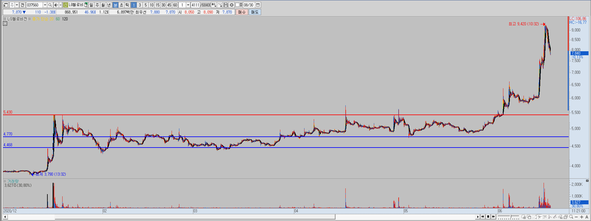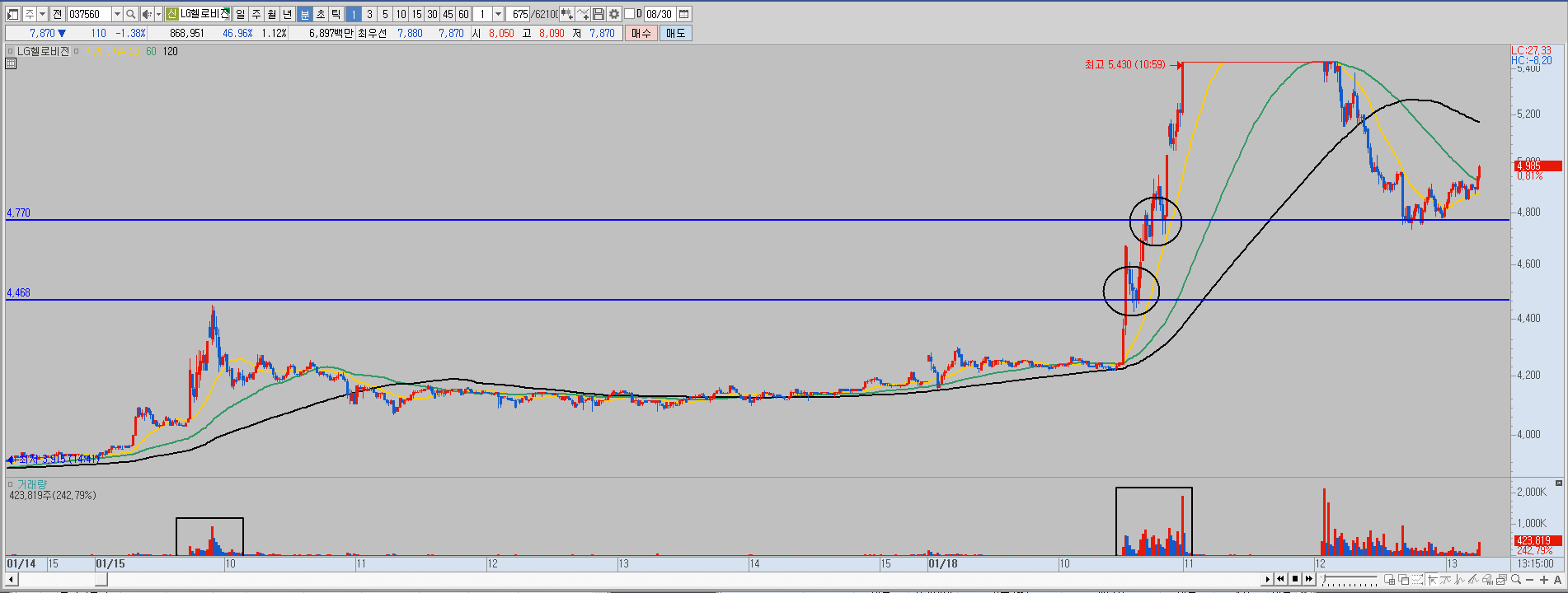 매우 중요합니다. 최대 거래량이 터졌을 때의 재료는 무엇인지..