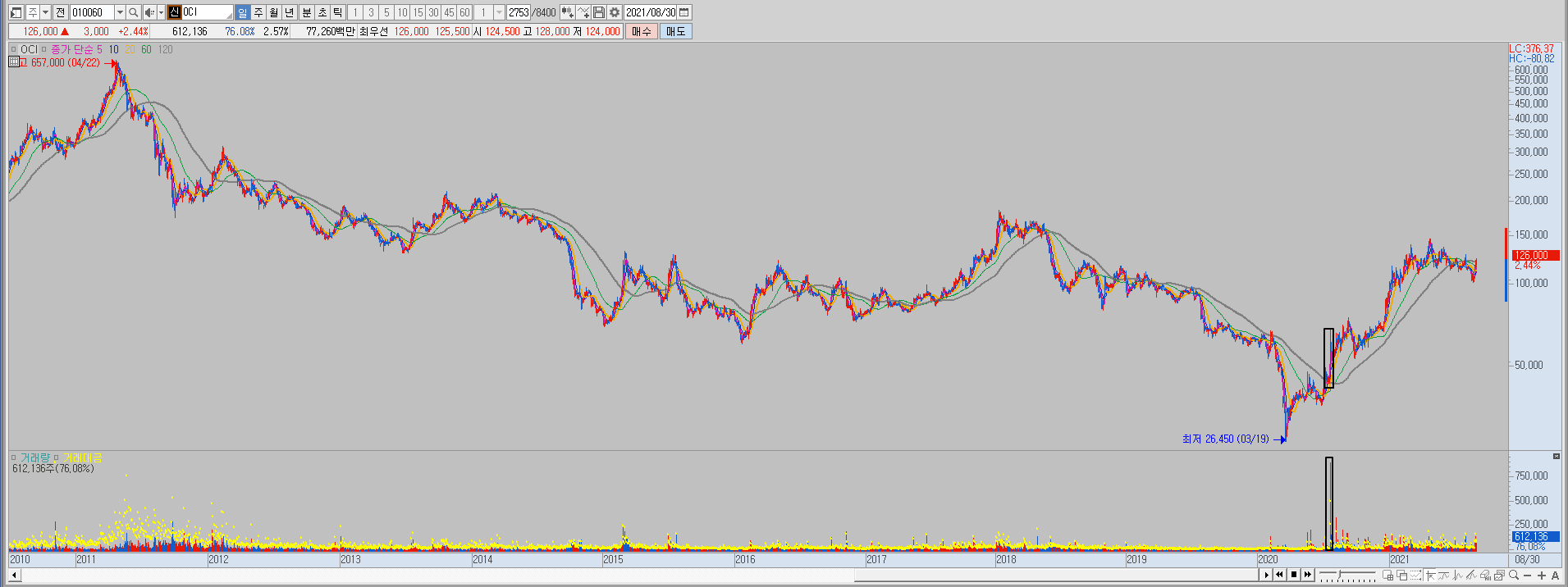 두 번째 종목은 oci입니다.