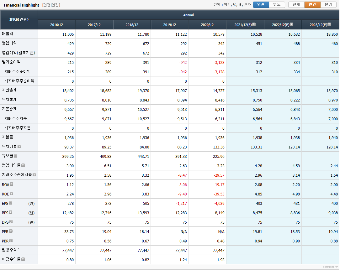 줄어드는 부채, 아주 좋은 유보율 19, 20 영업이익 손실이지만 시총 좋고 망할 회사는 아니다.
