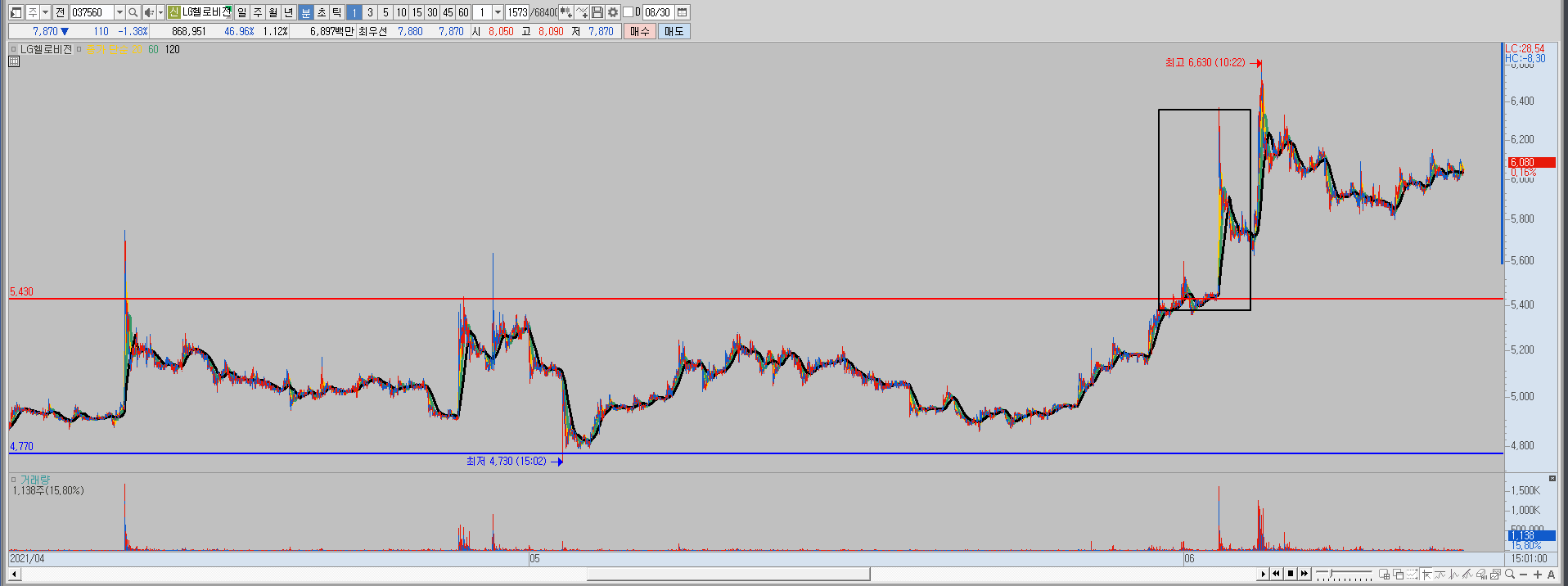 최대 거래량 들어온 당일날, 혹은 엄청나게 들어온 날의 분봉을 상세히 따지고 들어가면.