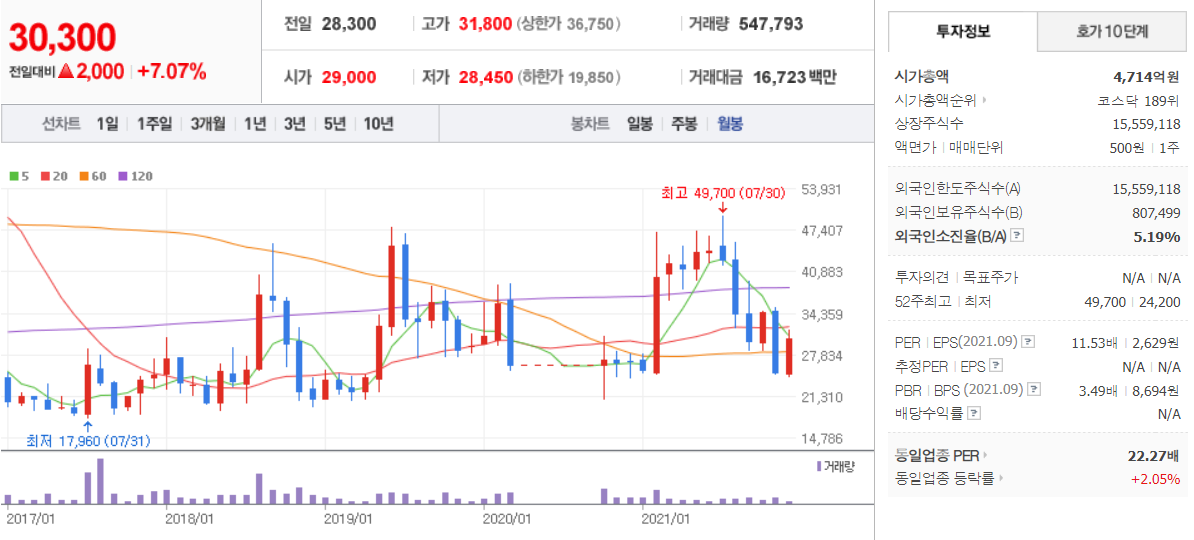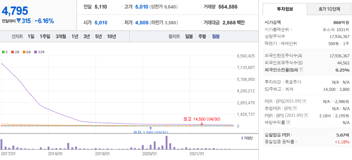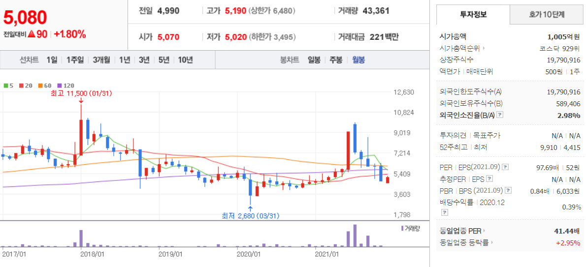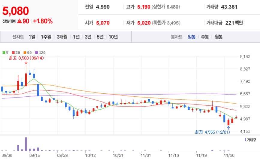 휴먼엔 - 월봉 / 네이버금융 참고