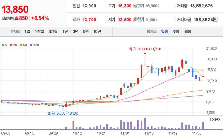 휴먼엔 - 일봉 / 네이버금융 참고