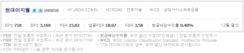 현대이지웰 ( 090850 : 코스닥 ) - 12월 3일 장 마감 기준
