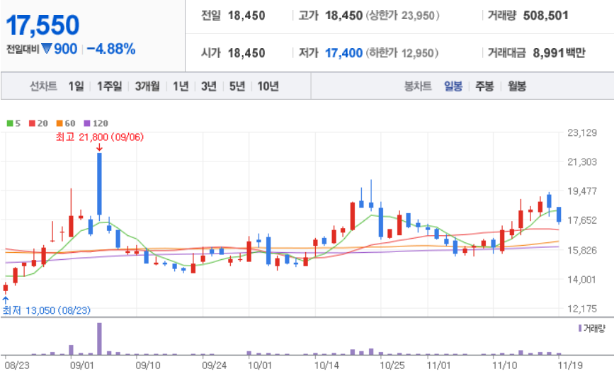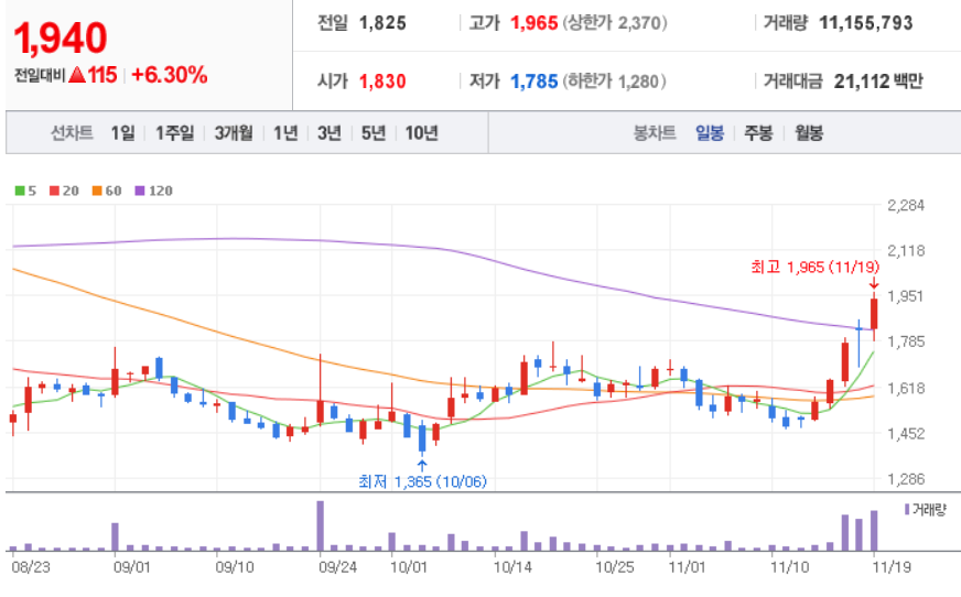 NEW ( 160550 : 코스닥 ) - 11월 19일 장 마감 기준
