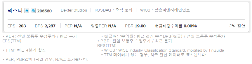 덱스터 (  206560 : 코스닥 ) / 네이버금융 참고