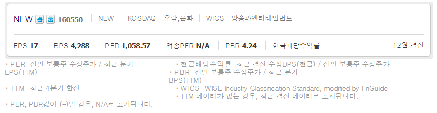 NEW (  160550 : 코스닥 ) / 네이버금융 참고