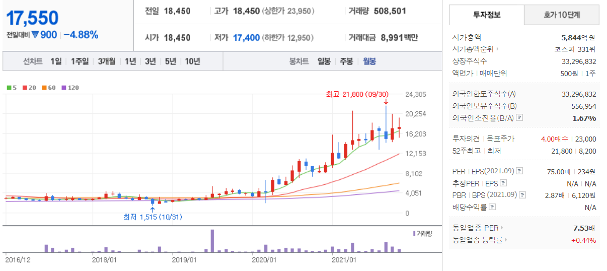 제이콘텐트리 (  036420 : 코스피 ) - 월봉 / 네이버금융 참고