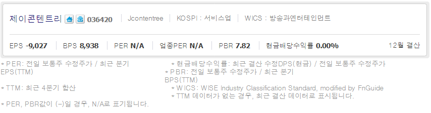 제이콘텐트리 (  036420 : 코스피 ) / 네이버금융 참고