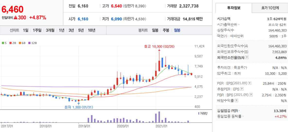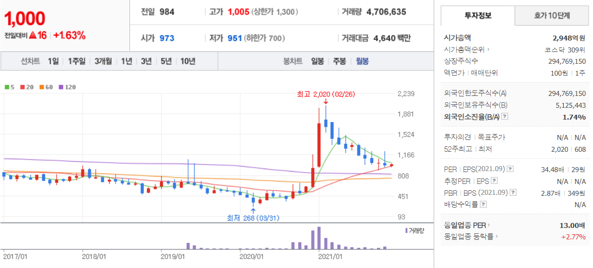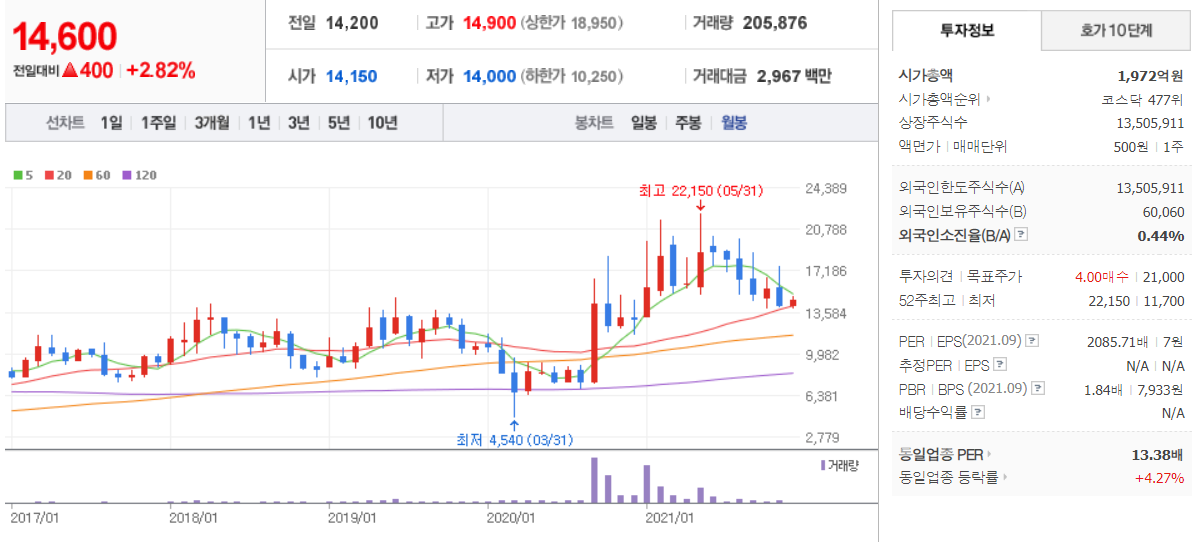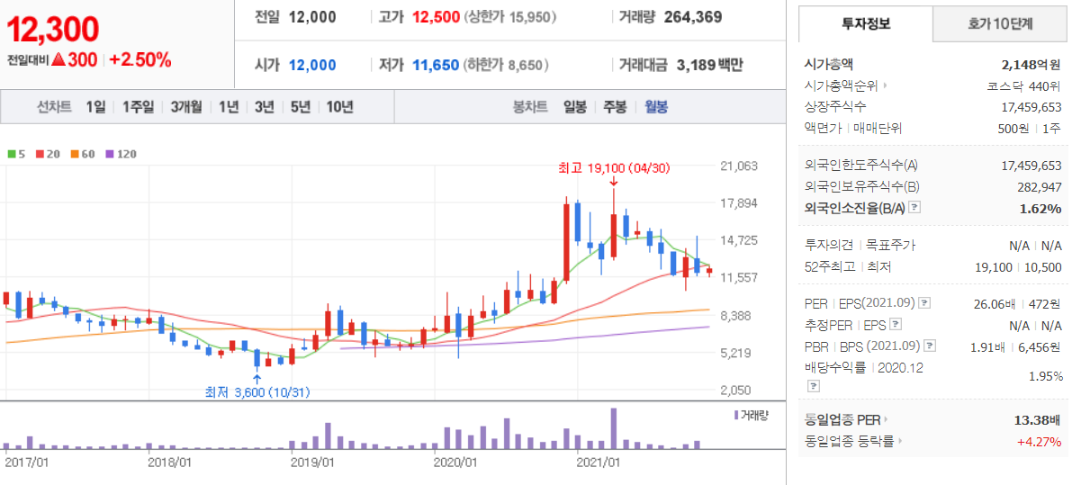 칩스앤미디어 - 월봉 / 네이버금융 참고