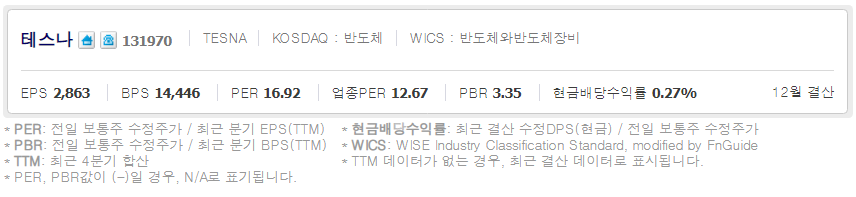 테스나 ( 131970 : 코스닥 ) - 12월 1일 장 마감 기준