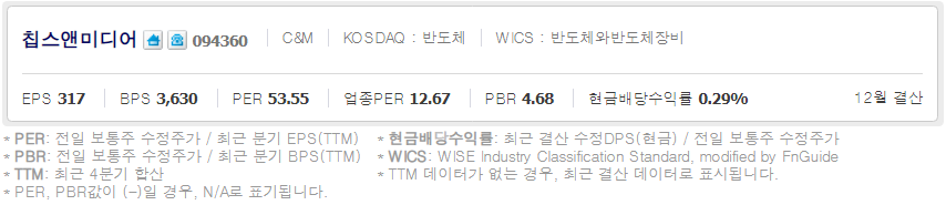 칩스앤미디어 ( 094360 : 코스닥 ) - 12월 1일  장 마감 기준