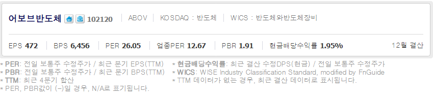 어보브반도체 ( 102120 : 코스닥 ) - 12월 1일 장 마감 기준