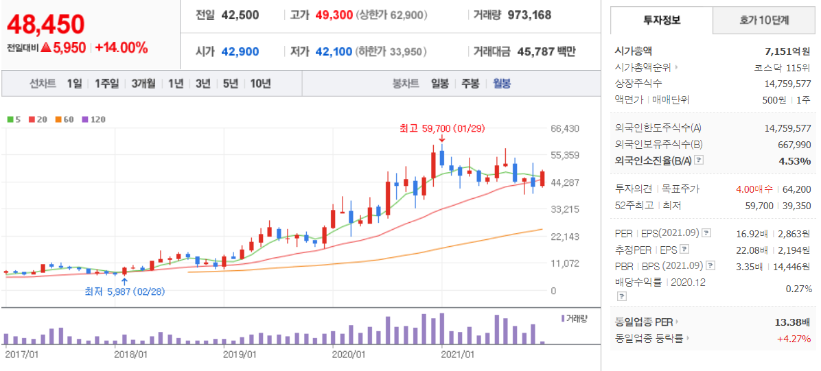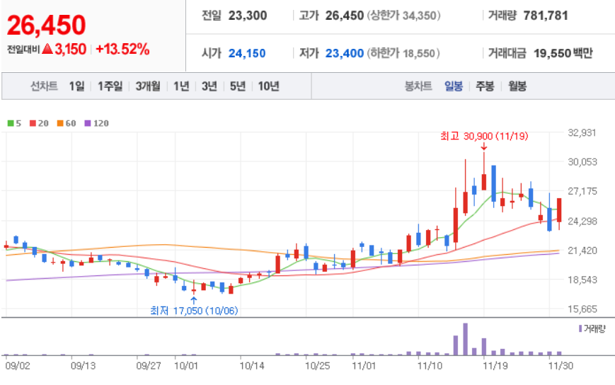 네패스 ( 033640 : 코스닥 ) - 12월 1일 장 마감 기준