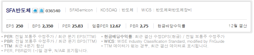 SFA반도체 ( 036540 : 코스닥 ) - 12월 1일 장 마감 기준