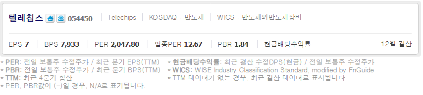 텔레칩스 ( 054450 : 코스닥 ) - 12월 1일 장 마감 기준