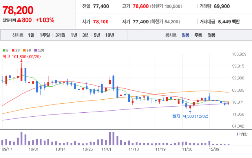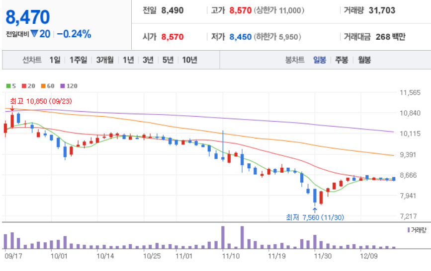 SKC ( 011790 : 코스피 ) - 12월 16일 장 마감 기준