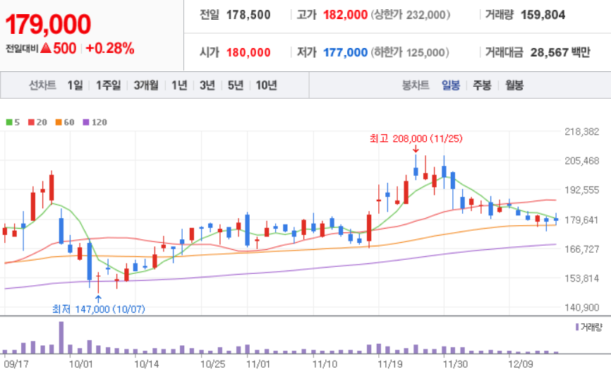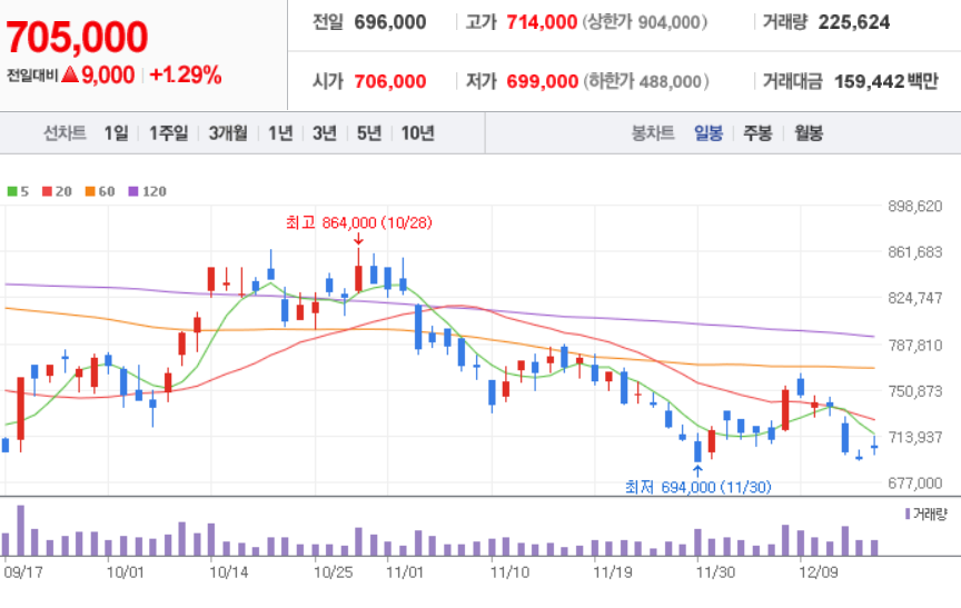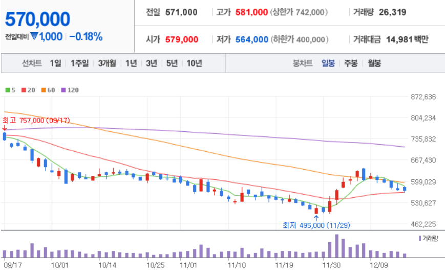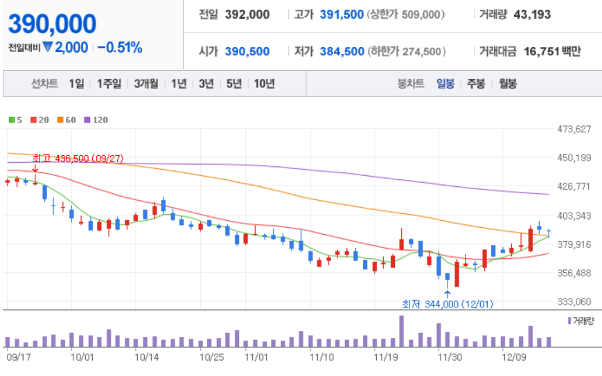LG화학 ( 051910 : 코스피 ) - 12월 16일 장 마감 기준