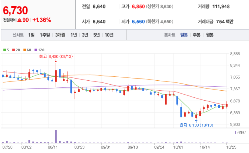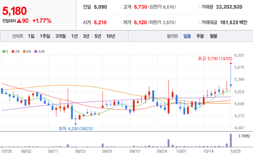 10월 25일 장 마감 기준