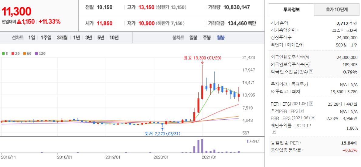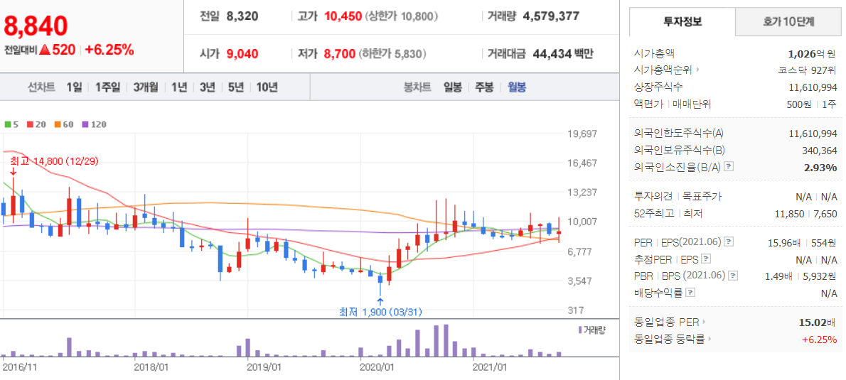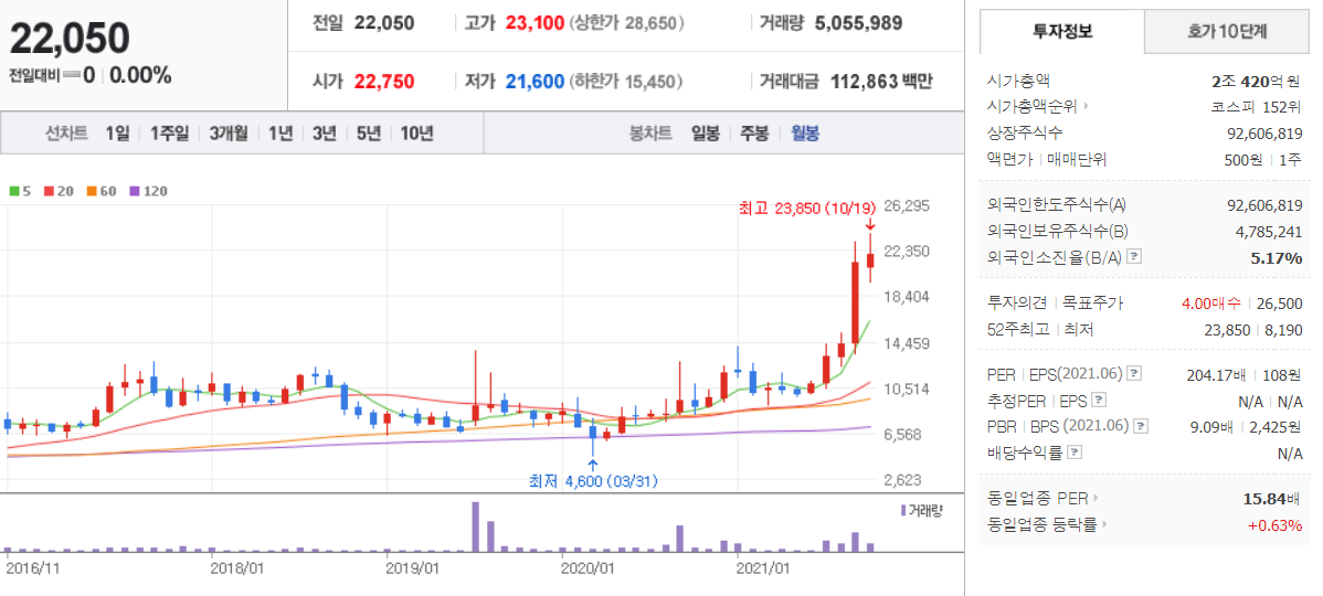 에코바이오 (  038870 : 코스닥 ) / 네이버금융 참고