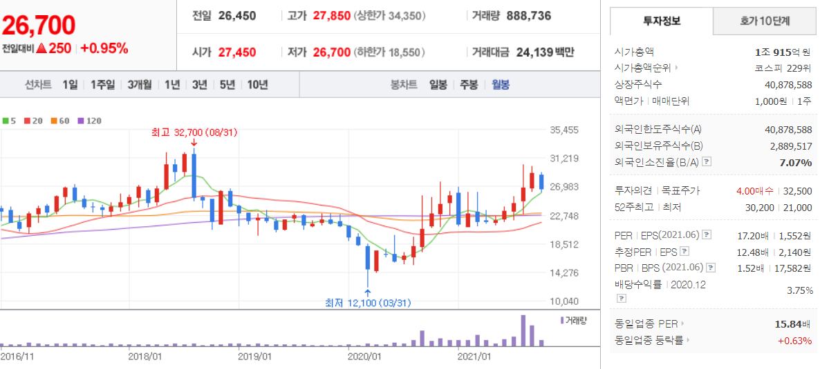 휴켐스 (  069260  : 코스피 ) / 네이버금융 참고