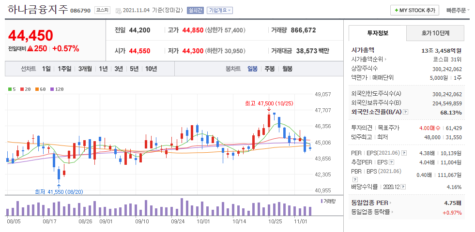 2005년 설립된 하나금융그룹 지주회사로서 자회사 지배 및 경영관리, 자금공여 등의 업무 수행.