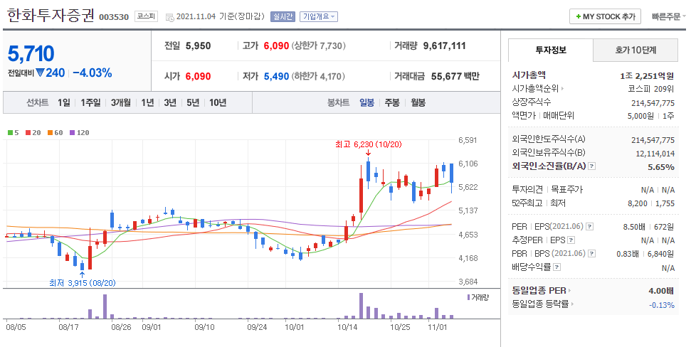 동사는 매매, 위탁매매, 집합투자업, 투자자문/일임업, 신탁업 등을 영위하고 있으며, 현재 한화 자산운용이 최대주주 (지분율 19.63%) 임.