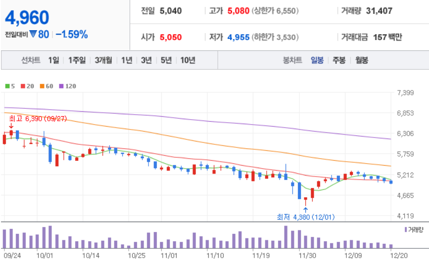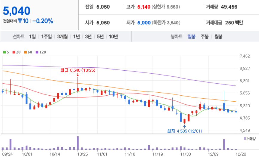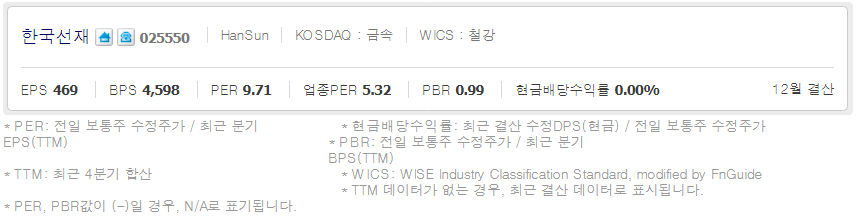 한국선재 ( 025550 : 코스닥 ) - 12월 20일 장 중 기준
