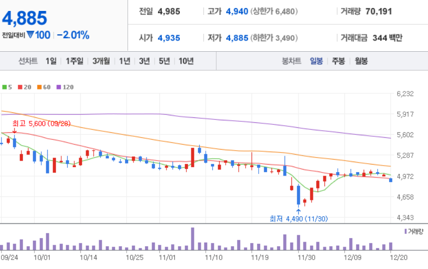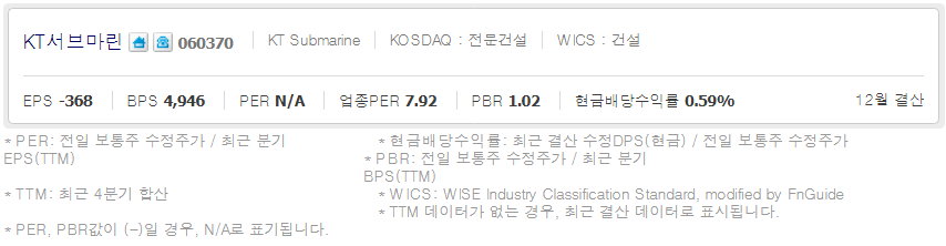 KT 서브마린 ( 060370 : 코스닥 ) - 12월 20일 장 중 기준