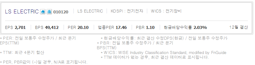 LS ELECTRIC ( 010120 : 코스피 ) - 12월 20일 장 중 기준