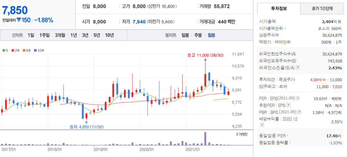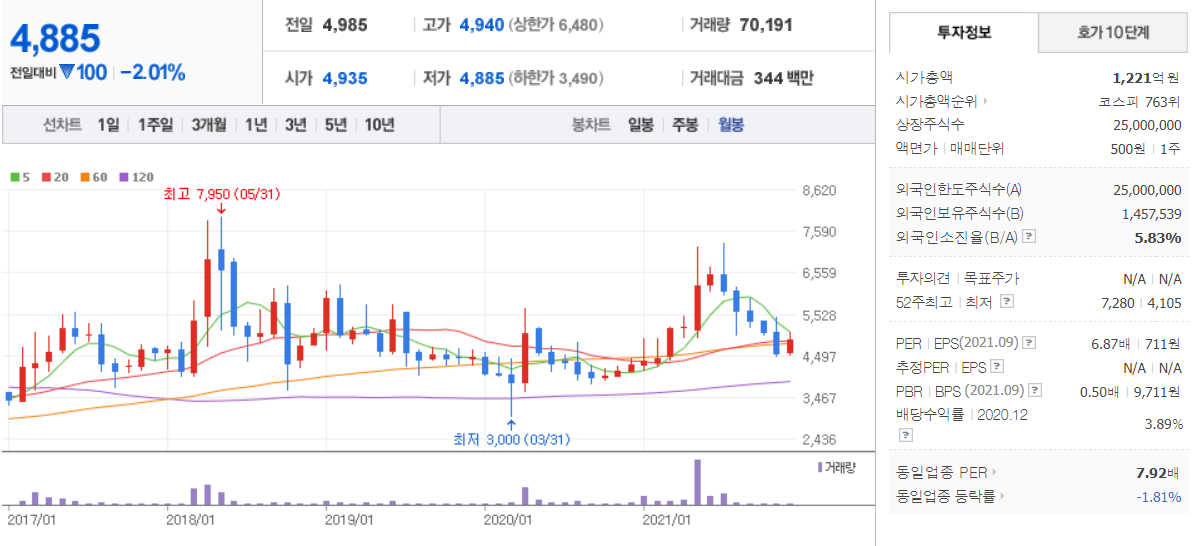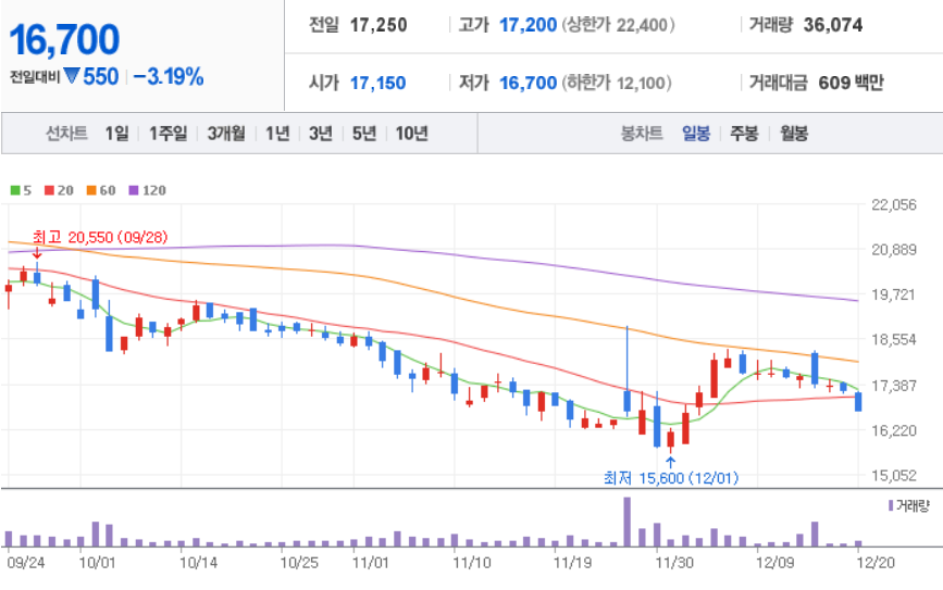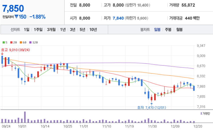 동아지질 ( 028100 : 코스피 ) - 12월 20일 장 중 기준