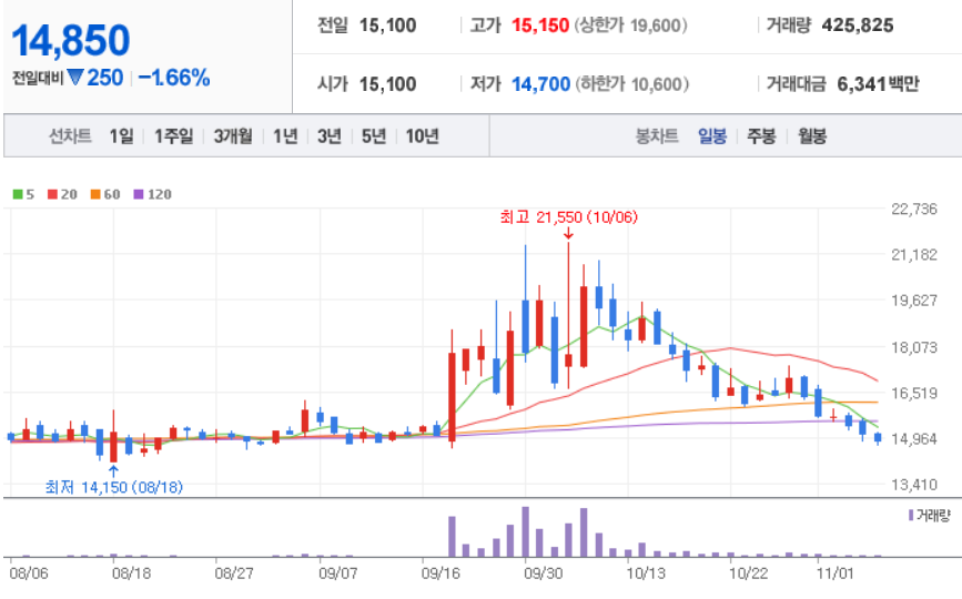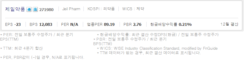 제일약품 ( 271980 : 코스피 ) - 11월 5일 장 마감 기준
